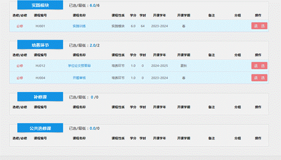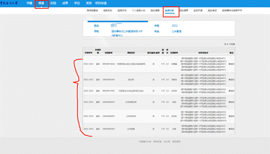 选择好6门课后,选课完成,可登录“选课记录”进行查看。