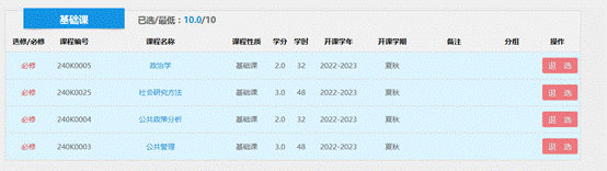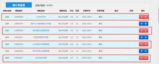 找到“核心专业课”,选择《公共经济学》、《新时期社区管理实践》、《公共危机与风险管理》、《地方政府治理》这4门课。