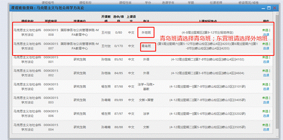 注意:青岛班选择“青岛班”,东营班选择“外地班”如图: