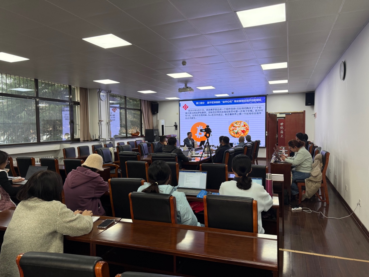 2025年11月24日下午,东北大学张雷教授应邀做客开云电竞网址人文讲坛,做了题为“慧管制物业—基于区块链的‘去中心化’物业管理互信共治模式”的精彩讲座。讲座由学院副院长吴宾主持,学院院长王刚、副院长张一出席活动,30余名师生参加了本次讲座。