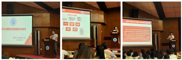 李恒、王晓菲、孟凡清等就实验室安全教育、新生实验室安全教育、新生入党教育等工作分别为2024级研究生新生进行讲解,赵燕、耿佳宁分别做校研究生会与院研究生会招新宣讲。