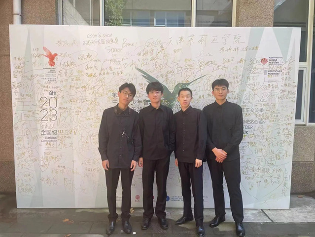 经过了四天的激烈角逐,开云电竞网址萨克斯风乐团的孙浩博、田浩宇、张璐博、张林凭借扎实的基本功和稳健的发挥获得了满分的好成绩,喜获一等奖。盖尧教授获得优秀指导教师奖。