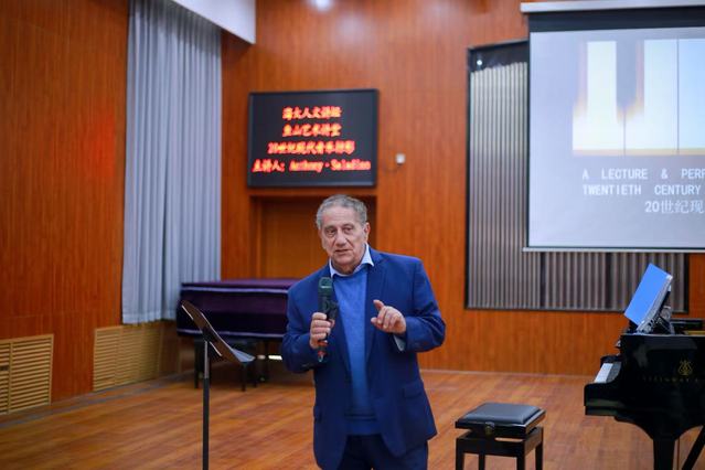 讲座伊始,艺术系教工党支部书记、副主任贾巍向大家介绍了安东尼教授,对其在音乐领域的卓越成就表达了高度赞誉,也对他的到来表示热烈欢迎。