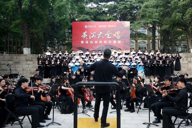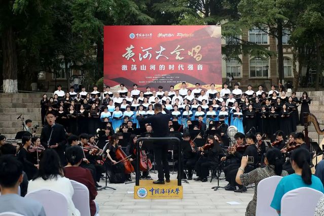六月的海大园,绿意葱茏,海风习习,一场震撼心灵的音乐盛典在鱼山校园人鱼广场磅礴上演。《黄河大合唱》诞生于抗日战争最艰苦的时期,作品以黄河为象征,通过《黄河船夫曲》《保卫黄河》等八个乐章,鼓舞全民抗战斗志。《黄河船夫曲》中,激昂的旋律好似黄河汹涌的浪涛,将观众瞬间卷入那波澜壮阔的场景之中,仿佛能看到船夫们与风浪搏击的坚毅身影;《保卫黄河》里振奋人心的轮唱,层层递进,每一句歌词都如同一把火炬,点燃了现场观众心中对祖国山河的炽热热爱,更彰显出对时代使命的勇于担当,将黄河的磅礴气势和中华民族坚韧不拔的精神诠释得淋漓尽致。六月海大园里奏响的这曲《黄河大合唱》,如同一股奔涌不息的精神激流,将抗战时期中华民族的怒吼与新时代青年的奋斗心声完美交织。