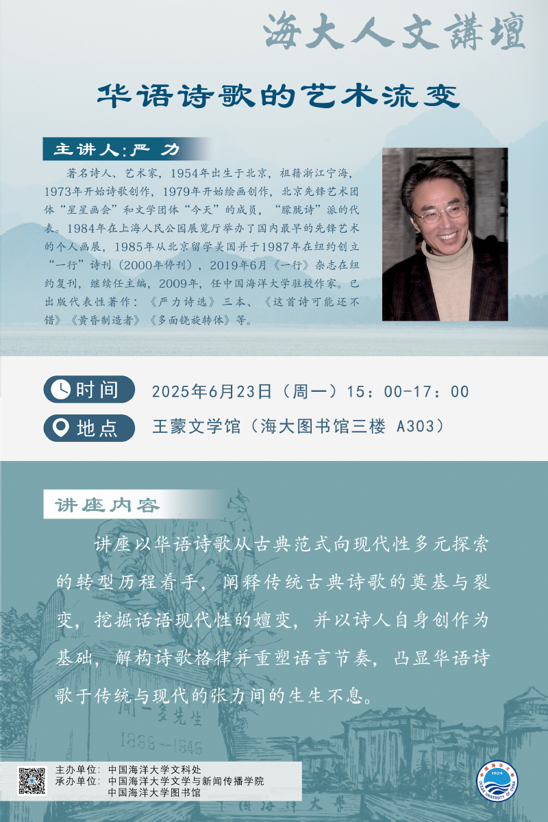 海大人文讲坛2025年第52讲—严力 | 华语诗歌的艺术流变