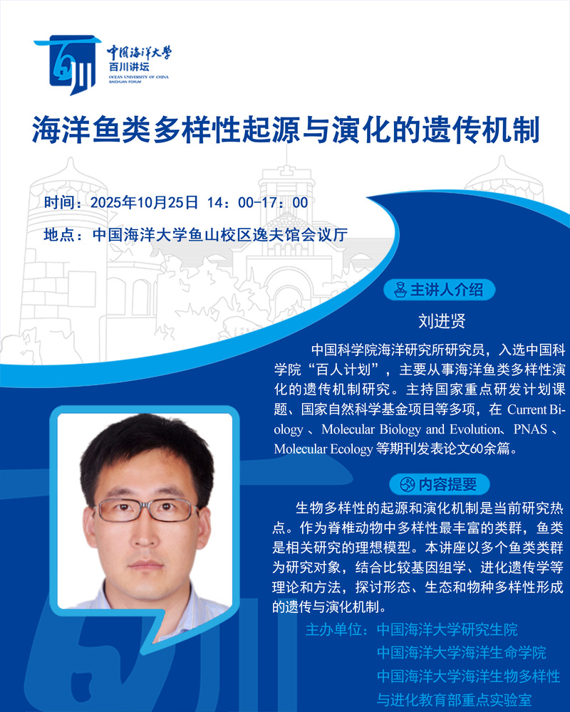 研究生百川讲坛第538讲-刘进贤:海洋鱼类多样性起源与演化的遗传机制