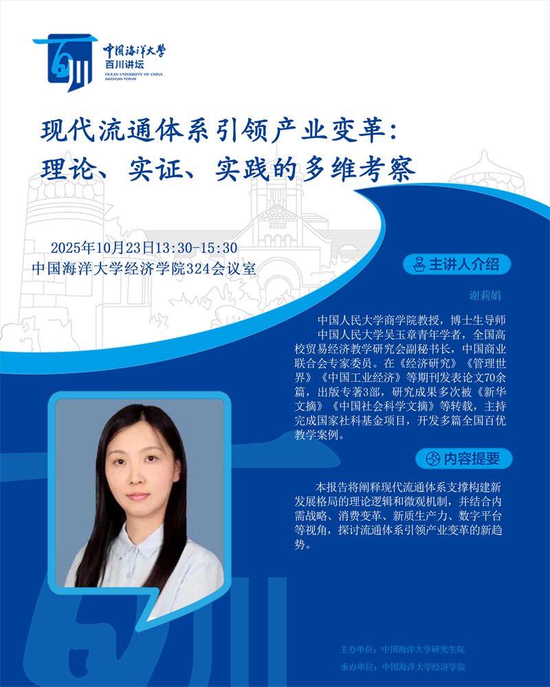 研究生百川讲坛第537讲-谢莉娟:现代流通体系引领产业变革:理论、实证、实践的多维考察