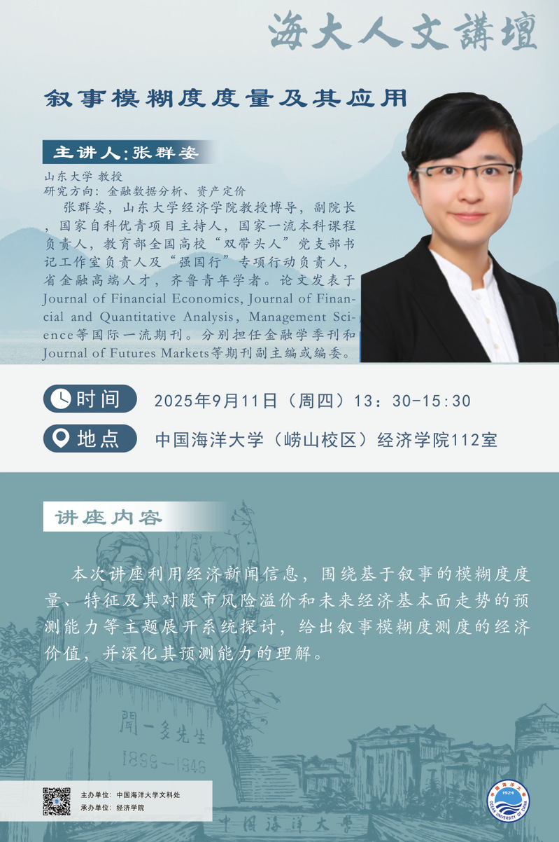 海大人文讲坛2025年第61讲-张群姿:叙事模糊度度量及其应用