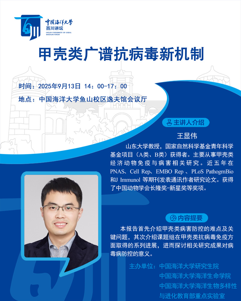 研究生百川讲坛第518讲-王显伟:甲壳类广谱抗病毒新机制