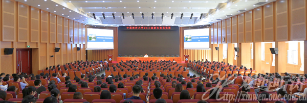 本站讯 9月28日下午,2017级新生党员佩戴党徽走进崂山校区海洋科技中心国际报告厅,聆听学校党