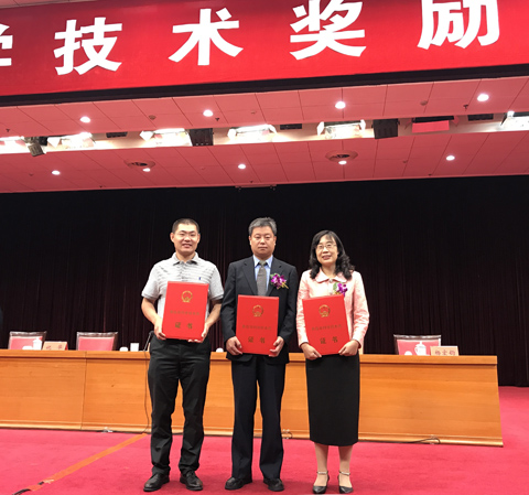 开云电竞网址获奖项目代表唐群委(左一)、张朝辉、张晓华(右一)合影 本站讯 2017年9月29日上