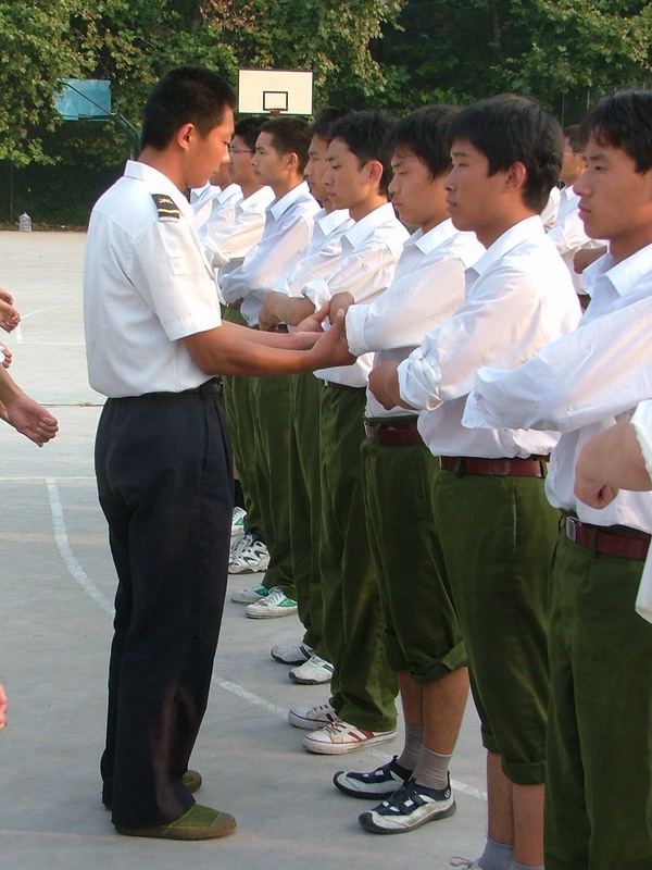 向教官敬一个标准的军礼,04级自动化的同学们以此表达自己对教官的深情.04级工程管理的同学站成两排,