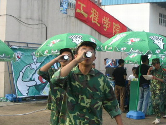 喝完饮料,我们继续练!一定能练出好成绩。 教官,喝杯饮料解解暑。 工程学院赠饮活动为每一位同学
